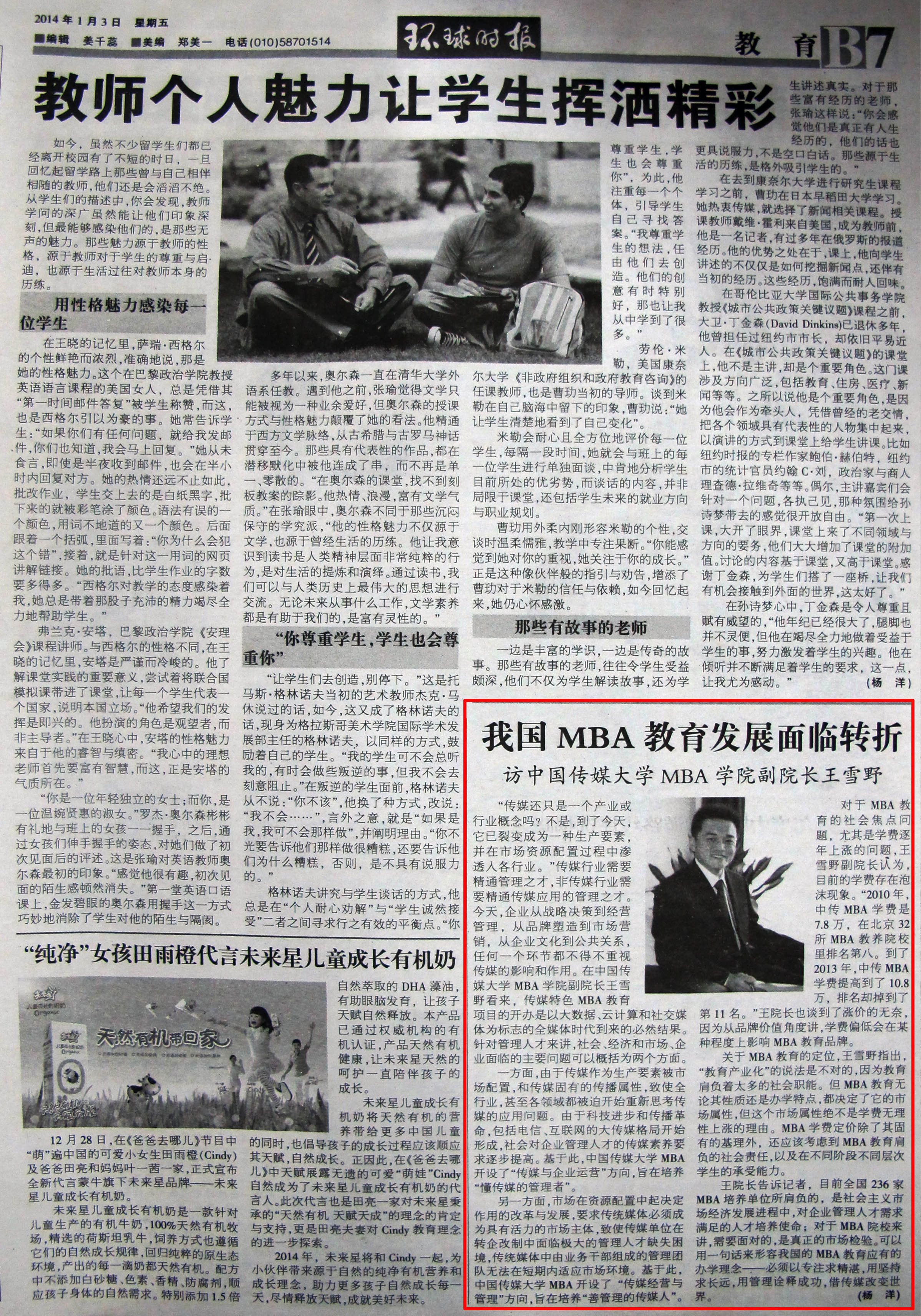 近日,Beat365MBA学院王雪野副院长接受《环球时报》专访,就我国MBA教育的发展进行了深入解读。