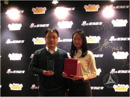 文化发展研究院靳斌老师(左一)作为指导教师领取证书和奖杯