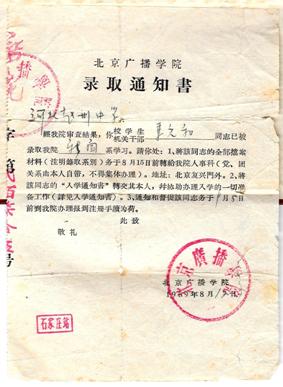 61级外语系英语班毕业照 从新闻系分出来的英语班 “你看,这就是我当年的录取通知书。” 61级英语专业的毕业生马元和小心翼翼地摊开一张泛黄的小纸片,折痕深深浅浅,字迹却清晰依旧;印有“北京广播学院录取通知書”的字样下方,短短几行字写明被录取的学生何时何地去何处办理入学手续。半个多世纪前,几百个来自全国各地的学子就凭着这一张薄薄的录取通知书,踏入了北京广播学院。 61级英语专业毕业生马元和(原新闻系)的录取通知书 “入学之初,我上的还是新闻系,刚读了两年,因为一次谈话,改变了我以后的方向。”马元和的日记详细地记述了当时的情况,“1961年9月15日,新闻系59级主任、党支部书记王心荣老师找我谈话,说外语系要开设英语班,培养从事国家广播电台对外宣传工作的学生,要求既具备一定的新闻素养,又有较好的英语水平,系领导建议我到英语班学习,我当时表示服从分配。” 原59级新闻系4班的马元和至今留有一张新闻系全体学生的花名册,每个学生的名字后都附有外语成绩,这也成了当年分专业的重要参考。最终,英语班吸纳了13名从新闻系选调的学生,章杏娣、喜万仓、马元和、姜绍禹和王尤莹等5人来自59级;赵慧先、王纬、洪静怡、赵设银、朱汉涛、石怀珍、赵洪士和张美华等8人来自60级,总共7男6女。 外教迪莉娅老师和学生在紫竹院的合影 首届英语班的主讲教师由黎秀石老师担任,黎老师从当时的中央广播事业局对外部英语组调任,“临危受命”,自编教材,一人便承担了英语精读、英语泛读和英语写作三门课程的教学工作。 “我们班有一位教口语的外教老师,是来自英国的迪莉娅女士,比当时班里年龄最小的学生王纬还要年轻。”马元和说到,为了训练学生的口语表达能力,这位年轻的外国老师多次与班里同学一起到紫竹院等旅游景点,借景生情地进行英语对话,达到事半功倍的效果。 终生难忘的一次实习经历 毕业前夕,学校给每个同学安排了实习,大部分的同学都被安排在当时的中央广播事业局下属单位,其中马元和被安排在国际联络部(后改为外事司),这次宝贵的实习经历也决定了他一生的工作方向。“1964年10月30日,领导找我谈话,让我随梅益局长出访阿尔巴尼亚,做他生活上的翻译,因为没有经验,当时非常紧张。”马元和接到这样的任务后积极寻求学院老师的帮助,时任广院党委组织部部长的聂丽兰老师因去外地出差,听到这样的消息后还亲笔写了封信鼓励学生“珍惜这次难得的实习机会,认真学习,虚心求教,争取圆满完成任务”。 “那是我第一次坐飞机,第一次出差,第一次出国,第一次给领导当翻译……”马元和现在回想起犹有余味,“没有钱买衣服我们都是向公家借中山装、借箱子;第一次在飞机上吃牛排,一看见黑漆漆的肉根本没有胃口。”有一次经验丰富的随同翻译有事不在,还没毕业的马元和顶替了上去,结果有个词不会翻译,当时既紧张又尴尬。有了这次经历,马元和体会到“书到用时方恨少”的滋味,也以此激励自己更加刻苦认真地学习。毕业后,马元和以出色的表现留在了国际联络部工作,一干就是一辈子。 四名同学喜结连理 除了在校园里获取知识,学生每学期都去乡下干农活,进行“知识分子与劳动相结合”的锻炼。尤其每逢“三夏”——夏收、夏种、夏播,学校会分批分期地带着学生下乡,一去就是一个月。“那时候机械化程度很低,我们就去乡下在下雨之前抢收小麦,叫做‘龙口夺粮’”。61级英语专业毕业生喜万仓回忆到,当时的学生积极响应党的号召,劳动热情高涨,不仅集体下地干活,平时在学校也会参加劳动,“我和马元和等几个同学,每个周末都去食堂帮助师傅打扫卫生,学习响应‘雷锋精神’。”那个年代独有的经历让13个学生朝夕相处,互帮互助,情同手足。当时班里唯一一个在高中就是学生党员的赵设银,善于做政治思想工作,在他的介绍和协助下,班里的赵慧先和马元和先后加入了党组织,他也被大家亲切地称为“小山羊”。在那段苦甜相伴的日子里积累起来的深情厚谊,也萌发出了学生时代最单纯美好的恋情。首届英语班里的毕业生马元和与王尤莹、喜万仓与张美华在毕业后喜结连理,白首相伴。 61级英语专业全体学生 61级英语班的所有学生学习刻苦,成绩优异,毕业后有的投身教育事业,如在广院担任英语教学工作的王纬、姜绍禹;有的分配到中央广播事业局、国家编译局等国家企事业单位;有的一直从事广播电视援外工作,担任驻外记者,实现了创建首届英语班的初衷;有的毅然放弃优越的工作生活条件,回到故乡为基层的教育工作无私奉献。黎秀石老师对自己的第一批学生“深感宽慰”。 “现在回想起来,从广院毕业已近半个世纪,但是那段充实美好的大学时光还历历在目,我们对母校的感恩之情也变得越来越强烈,越来越浓厚”。此时此刻,对那些还在母校学习的晚辈们,老一辈毕业生最想表达的话正如校歌所唱---“珍惜春光”。像年轻的白杨一样,扎根热土,经历风霜,胸怀梦想,直面未来,希望学子们对母校的感恩之心,就像儿女对父母的亲情一样,历久弥坚,薪火相传!