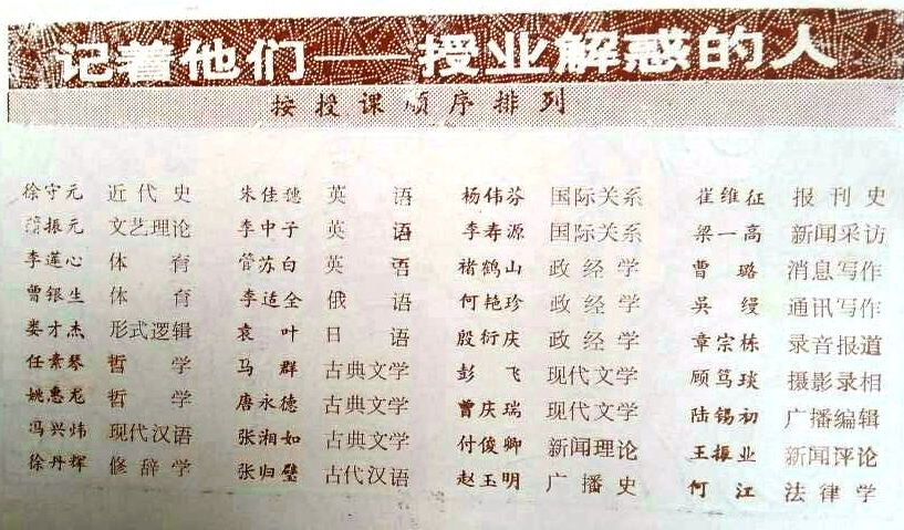 为此,学校针对这一批学生的特点,采用以专题为主的教学模式,力求每个专题知识讲得既有深度又透彻,从而激发他们从规律和本质的层面掌握新闻事业的发展脉络;而在新闻采编等实操性课程的教学上,则采用“座谈会”的形式,学生们分成小组,共同交流采访写作经验,互相借鉴学习。“我们当时交流的许多例子都被写进后来的教材里,也算是前人栽树,后人乘凉吧。”陈汝平颇为感慨地说。