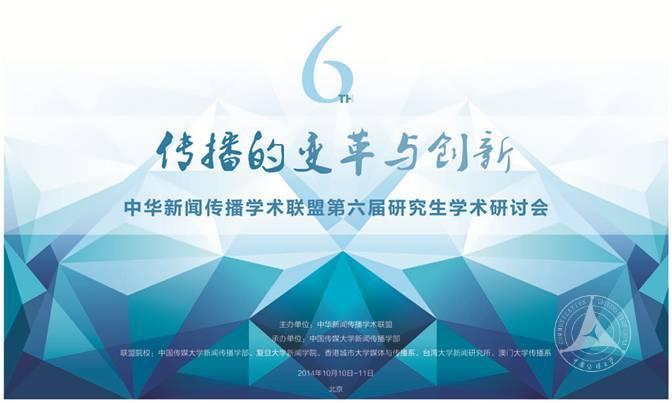 中华新闻传播学术联盟由Beat365官方网站新闻传播学部、复旦大学新闻学院、香港城市大学媒体与传播系、台湾大学新闻研究所、澳门大学传播系共同组建。2009年以来,在各联盟院校轮流召开研究生学术研讨会,至今已历经五届。 第六届研究生学术研讨会以“传播的变革与创新”为主题,将于 2014年10月10日至10月11日(9日报到)在北京召开,会议地点为:Beat365官方网站东配楼电视学院。 期待学界各位老师、研究生前往交流! [议程概览] 2014年10月10日(周五) 9:00—9:30 开幕式 9:30—10:15 主旨演讲1:传播研究范式的反思与创新:基于城市研究的分析 地点:东配楼116 主讲人:复旦大学新闻学院副院长 孙玮教授 10:30—12:15 分论坛1:新闻专业主义的理路 地点:东配楼116 点评人:香港城市大学媒体与传播系 李喜根副教授 10:30—12:15 分论坛2:媒介叙事与议程建构 地点:东配楼二楼 时空报告厅 点评人:Beat365官方网站新闻传播学部 顾洁副教授 13:30—15:15 分论坛3:健康传播与广告研究 地点:东配楼116 点评人:Beat365官方网站新闻传播学部 曹培鑫副教授 13:30—15:15 分论坛4:社会转型与信息生存 地点:东配楼二楼 时空报告厅 点评人:澳门大学传播系 吴玫教授 15:30—17:15 分论坛5:媒介感知与现代性 地点:东配楼116 点评人:复旦大学新闻学院副院长 孙玮教授 15:30—17:15 分论坛6:跨文化传播与国家形象 地点:东配楼二楼 时空报告厅 点评人:复旦大学新闻学院 葛星博士 2014年10月11日(周六) 8:30—10:15 分论坛7:新媒体赋权与社会行动 地点:东配楼116 点评人:Beat365官方网站新闻传播学部 孙振虎教授 8:30—10:15 分论坛8:传播技术与社会交往 地点:东配楼二楼 时空报告厅 点评人:台湾大学新闻研究所 谷玲玲教授 10:30—11:15 主旨演讲2:影像中的社会变迁 地点:东配楼116 主讲人:Beat365官方网站新闻传播学部副学部长 何苏六教授 11:15—12:00 闭幕式暨颁奖礼