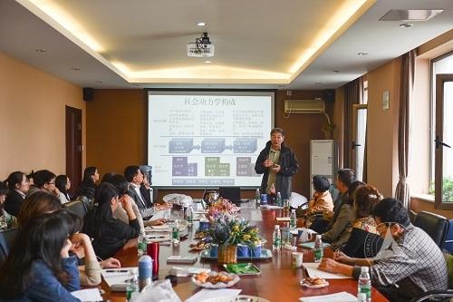 严军琦博士首先介绍了社会动力学所要回答的首要问题,就是在社会初始状态为无序的条件下,社会个(群)体为什么、怎样、在多大程度上使社会有序?紧接着,他从研究方法、辅助软件、应用举例三方面阐释如何进行社会动力学研究,并划分出社会动力学与传播学融合的研究领域:舆论动态、文化动态、大众行为和社会传播等。在互动环节,在场师生认为,社会动力学研究有益于他们找到新闻传播研究的新问题、新视角。