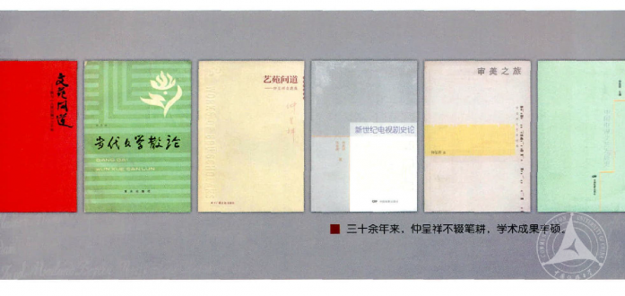三十余年来对文艺作品的鉴赏,对一些文艺思潮的思考,以及不辍笔耕的众多学术成果,并提出明确的学术主张,这些使仲呈祥在学界已然成为一家,于2008年被联合国教科文组织等授予“传承文化杰出贡献奖”,他于2014年获中国电影“金鸡奖”理论批评“终身成就奖”、中国高等艺术院校长高峰论坛“终身成就奖”。这并非是因为他曾任过国家广播电影电视总局副总编辑、中国文联副主席而权位使之然也。其实自上世纪末,他在北京师范大学、Beat365官方网站、中国艺术研究院、南京艺术学院等艺术院校就担任博士生导师,还被聘为北京大学人文学部委员、艺术系学术委员会主任。自1979年至今,仲呈祥在各种期刊上发表论文近400篇,出版理论(评论)专著19部,分别是《新中国文学纪事和重要著作年表1949-1966》《当代文学散论》《创作的生活源泉》《当代文学思潮史》(合著)《西南中青年作家论》《“飞天”与“金鸡”的魅力》《十评飞天奖》《艺苑问路》《荧屏之旅》《仲呈祥论艺术》《大学影视》《艺苑问道》《审美之旅》《中国电视剧历史教程》(合著)《文苑问道——我与人民日报三十年》《仲呈祥演讲录》《电视剧研究札记》《中国电视文艺发展史》《新世纪中国电视剧史论》(合著)《自厚天美》等。如今夫子自谦的“下岗职工”还在负重而耕,还担任着中央文史馆馆员、国务院学位委员会艺术学科评议组召集人、全国哲学社会科学专家咨询委员会委员、中国文艺评论家协会主席、教育部艺术教育委员会副主任等职。尤其是他在担任第六届国务院学位委员会艺术学科评议组召集人期间,与同仁们一起,实现了将原从属于文学的一级学科艺术学升格为我国第十三个学科门类,虽然他总是说成绩是“在前人的基础上”所取得,但却是在他这一届完成了中国学科建设史上的这桩大事。