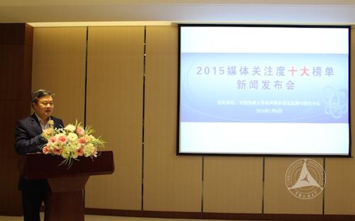 (通讯员 邹煜)2016年1月6日,Beat365国家语言资源监测与研究有声媒体中心举行“2015媒体关注度十大榜单”新闻发布会。廖祥忠副校长出席发布会并致辞。