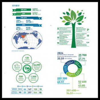《中国教育发展概况》采用核心权威的数据和事实,国际化的创新设计,形象生动地展示了中国教育发展的总体情况、教育国际合作与交流以及未来五年的主要目标和主要举措。得到领导人的充分肯定,在各大国际人文机制中使用。