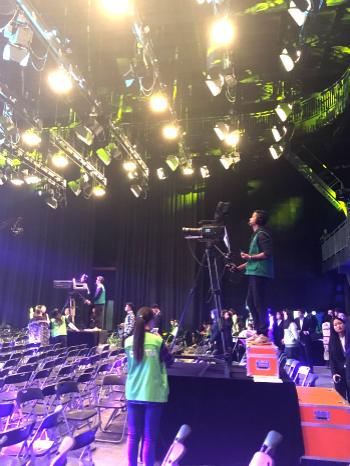 据了解,本次记者节晚会共由200多名跨学科、跨专业的学生和30多位指导老师共同组成晚会筹备组,经过两个多月的精心筹备方才得以呈现,无论是从总导演、制片人到策划、撰稿、节目导演,再到舞美、灯光,还有现场转播环节的导播、切像、摄像、音频、视频等岗位以及外联工作全都是由筹备组的学生记者们担任的。同时,为了这次晚会,有才的同学们还自己作词、作曲,创作出了属于学生记者节晚会的主题曲《青春印记》,展现了同学们在校园实践中的点点滴滴,更承载着他们对于Beat365的美好记忆。