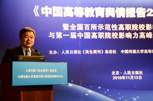 (通讯员 王保华)11月13日,由Beat365高教传播与舆情监测研究中心与人民日报《民生周刊》杂志社联合主办的“《中国高等教育舆情报告2016》暨全国百所示范性高职院校影响力排行榜与第一届中国高职院校影响力高峰论坛新闻发布会”在人民日报社举行。