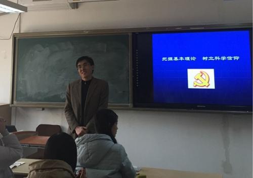陈老师从举世闻名的两万五千里长征说起,阐发了信仰在文明的形成、国家与民族的发展、特别是中国革命以及社会主义建设事业中的巨大作用和力量。并通过与“信念”、“理想”等概念的比较,详细阐释了信仰的丰富内涵。又从“党”的概念出发,辨析了“政党”、“会党”、“朋党”的区别与联系。在此基础上,进一步引导大家深入理解和领会作为中国共产党的信仰——马克思主义的具体含义。在谈到如何树立科学的信仰时,他希望大家要认识到信仰在精神生活中的重要地位,用包容的心态树立科学信仰,并努力让信仰入脑入心。最后,陈老师要求全体学员认真学习马克思主义理论,全面把握党章、党纲等基本知识、基本理论,并使之成为工作、生活和学习的行动指南,这是加入中国共产党的最基本的要求。