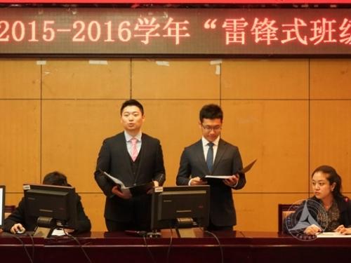 参加此次校级评审的16个班级均为符合“雷锋式班级”评选条件的“校优秀班集体”,各班通过提出申请、学部(直属学院)综合审核推选,进入最终校级评审答辩环节。校级评审会分为PPT展示讲解和评委提问答辩两个部分。会上,参评班级的学生代表通过视频、图片、文字等资料和各具专业特色的现场展示,充分展现了各个班级在新时期弘扬雷锋精神,践行社会主义核心价值观方面的典型事迹和班级风貌,并现场回答了评委的提问。经过评委的综合考评打分,最终将2014级广播电视学(国际新闻传播方向)、2015级广告学(中外合作办学)、2015级自动化等三个班级被命名为“雷锋式班级”。