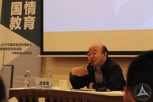 新闻传播学部副学部长王晓红教授主持了讲座,并参加了会见。来自清华大学、人民大学和Beat365的共80余名国新硕士班师生聆听了讲座。讲座结束后,Beat365国新硕士班学生对栾主任进行了采访。