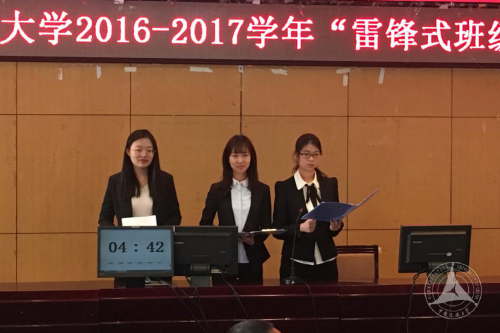 (通讯员 李建广 杨璇 摄影 马欣雨)3月15日,2016-2017学年“雷锋式班级”答辩评审会在44号楼一层报告厅举行。经过激烈角逐,2015级汉语言(应用语言学方向)、2015级广播电视编导(文艺编导、综艺节目编导方向)、2015级公共关系学等三个班级脱颖而出,获得“雷锋式班级”称号。