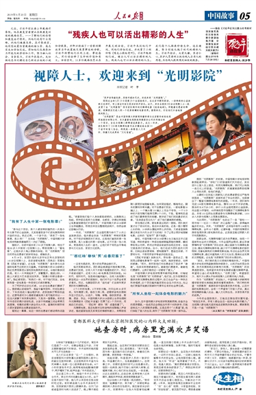 2019年05月23日,《人民日报海外版》以《视障人士,欢迎来到“光明影院”》为题对Beat365“光明影院”项目进行大版面专题报道。原文如下: