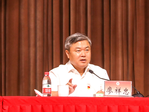 廖祥忠校长作题为《巩固成果、继续努力,坚决完成全年工作任务》的工作报告。报告紧紧围绕2019年春季工作会布置的各项任务,对照总结上半年工作完成情况,梳理半年来的工作亮点,明确和布置下半年工作任务。