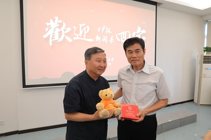 校友们向学校捐赠了灰楼纪念照、签名版《灰楼岁月-双甲子记》等礼物,校党委书记陈文申代表学校向校友们回赠了电视小熊、学籍纪念卡等返校纪念品。
