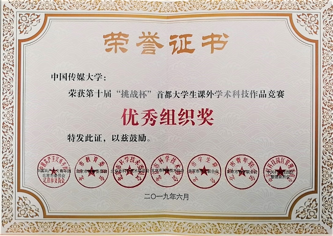 “挑战杯”全国大学生课外学术科技作品系列竞赛,被誉为中国大学生科技创新创业的“奥林匹克”盛会,是目前国内大学生最关注最热门的全国性竞赛,也是全国最具代表性、权威性、示范性、导向性的大学生竞赛。该项赛事采用晋级机制,先由各高校举行校内选拔赛,推选15部作品参加“挑战杯”首都大学生课外学术科技作品竞赛,在竞赛中获得特等奖或一等奖作品才有资格代表北京市参加“挑战杯”全国大学生课外学术科技作品竞赛。