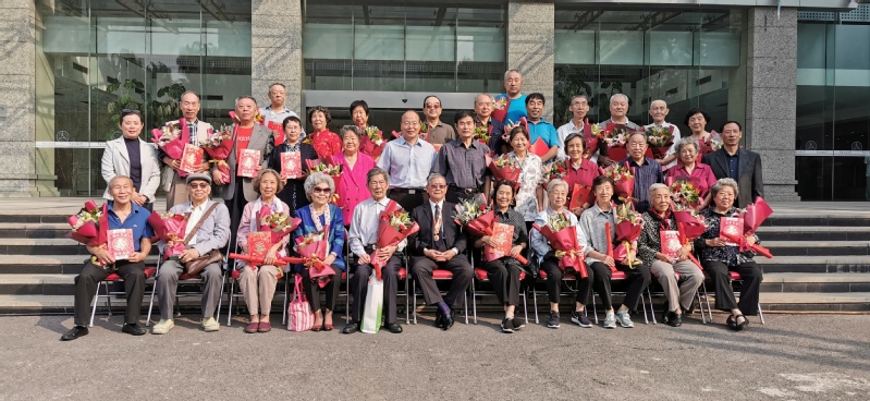 校领导和老寿星们集体合照,并观看了重阳节文艺汇演。
