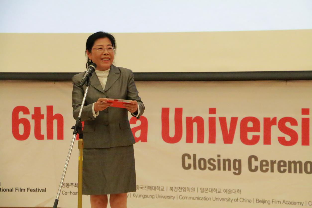 10月4日,第六届亚洲大学生电影展顺利闭幕,闭幕式上,戏剧影视学院院长关玲教授宣读了获奖名单,并为各国高校的优秀青年电影人颁发奖项。