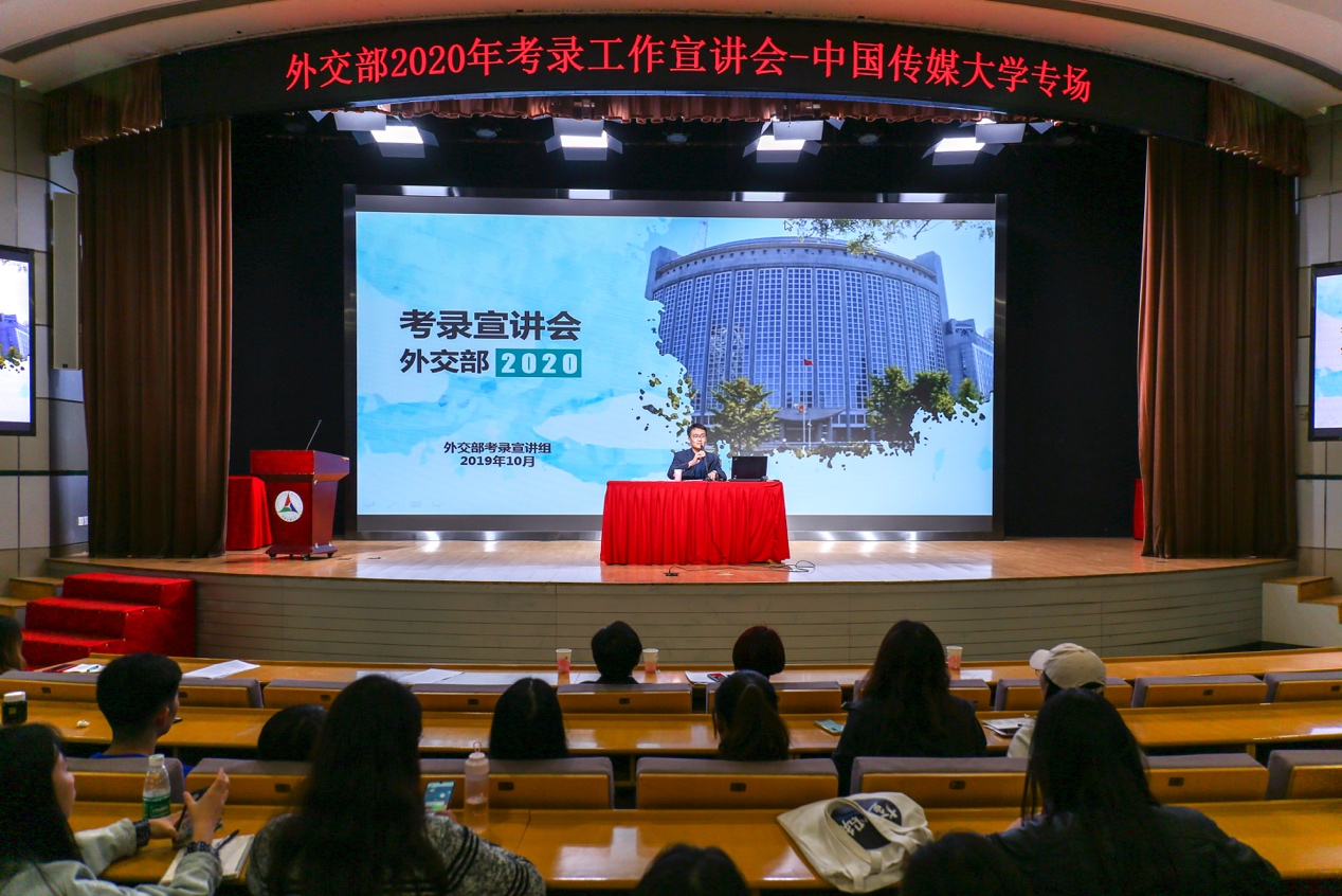 Beat3652009届国际关系专业硕士毕业生、外交部军控司副处长来海洋以自身工作经验和生活为实例,向大家讲述了就职于外交部以来,从一名传媒学子成长为优秀外交工作者的工作经历和心路历程。随后,外交部干部司考录培训处随员林浩结合视频,详细介绍了入职外交部后的职业发展、外交部2020年公务员招聘计划及报考流程等具体情况,并详细解答对同学们的现场提问做了详细解答,鼓励大家积极报考。