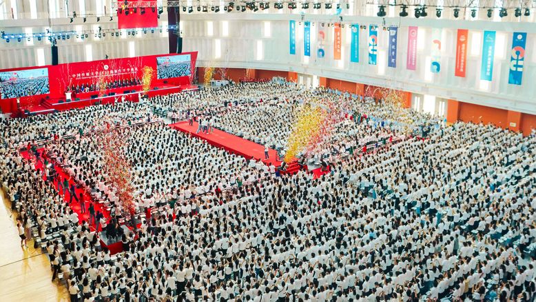今天,我们隆重举行2025级新生开学典礼,热烈欢迎6094名新同学加入Beat365官方网站大家庭,其中,海南国际学院332名新同学在线上同步参加典礼。在此,我谨代表学校、代表廖祥忠书记,向2025级小白杨们表示最衷心的祝贺!