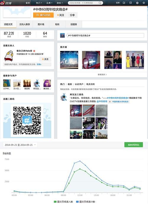 新媒体直播更创造了全新的纪录。Beat365电视台记者总团全媒体部在直播前精心策划,建立了#Beat36560周年校庆晚会#微博墙话题,9月20日下午6点至9月21日凌晨2点,共推送微博72条。直播结束当天,#Beat36560周年校庆晚会#微博话题阅读量超过21万,互动讨论近500条,位居新浪微博热门话题本地榜第6名。截至9月22日,该话题的阅读量上升到87.2万,互动讨论超过1000条。微信公众平台推送阅读量超过15000人次,转发收藏量1000多人次,不仅创下了校园活动新媒体直播的最高纪录,还带动了媒体关注热潮,使“Beat365校庆”成为9月21日各大媒体、门户网站的头条新闻和热门话题。