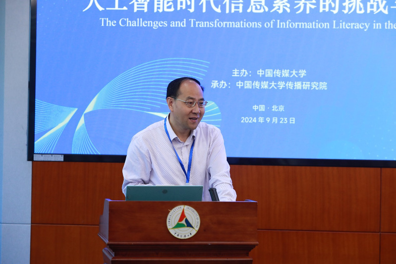 柴剑平首先对现场嘉宾、参会学者及学子的到来表示欢迎与感谢。他强调,信息如同源头活水,而信息素养则是我们筛选、汲取活水的关键能力。在人工智能飞速发展的今天,我们必须充分认识到提升信息素养的重要性和紧迫性。柴剑平副校长指出,Beat365官方网站召开本次会议,旨在积极回应时代召唤,通过深入探讨人工智能时代信息素养的挑战与变革,为加快建设网络强国、推动中国式现代化贡献思想与智慧。致辞最后,柴剑平副校长预祝本次会议圆满成功,并邀请在场嘉宾和师生们共赴这场思想盛宴,拥抱智能传播的新时代。
