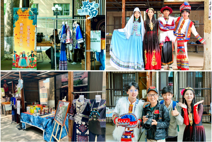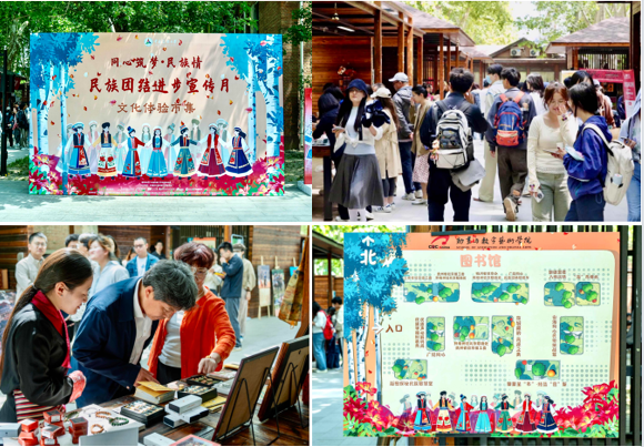 民族文化体验市集由5家省市驻京办、团工委与6个学院共同带来了12个独具特色的摊位,包括民族特色美食、民族非遗文创、服饰体验、互动游戏等摊位,展示了多彩的民族文化和民族习俗。