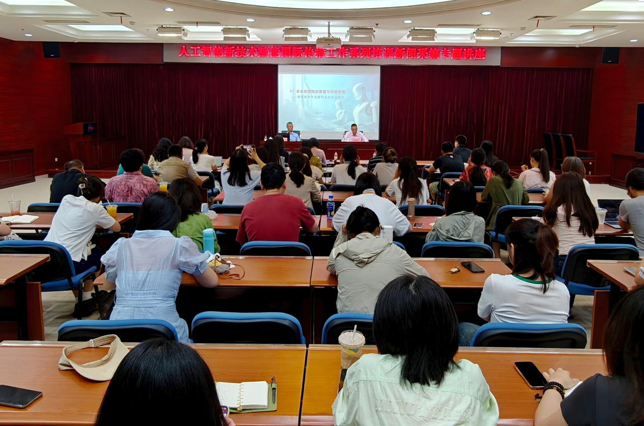 讲座由中国外文局教育培训中心副主任李恒田主持。柴剑平分析了人工智能的发展历程、核心技术和未来趋势,重点探讨了AI如何改变知识生产、知识传播、治理模式,以及国际话语体系。结合中国外文局的工作,柴剑平以AI驱动的出版行业生产范式变革和区域国别文明互鉴智能体为例,对AI赋能国际传播选题策划、内容生产跨模态重构、作业流程智能化升级和分发体系精准化重塑进行了演示和讲解。