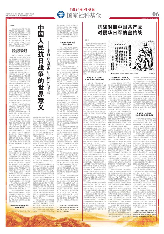 8月29日,《中国社会科学报》国家社科基金专版刊登项目成果文章《抗战时期中国共产党对侵华日军的宣传战》。文章剖析了通过中国共产党团结多数、孤立少数的“两分法”理论的形成,梳理了巧用“外嘴”、攻心为上的对日宣传战实践,通过日本馆藏档案总结了中国共产党对日宣传战在侵华日军中造成的效果:士气低落,逃兵增多,充分彰显了中国共产党在抗战中不可替代的历史贡献。
