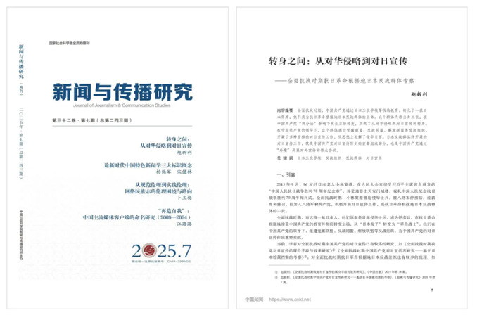 ▲ 2025年第7期《新闻与传播研究》封面与论文
