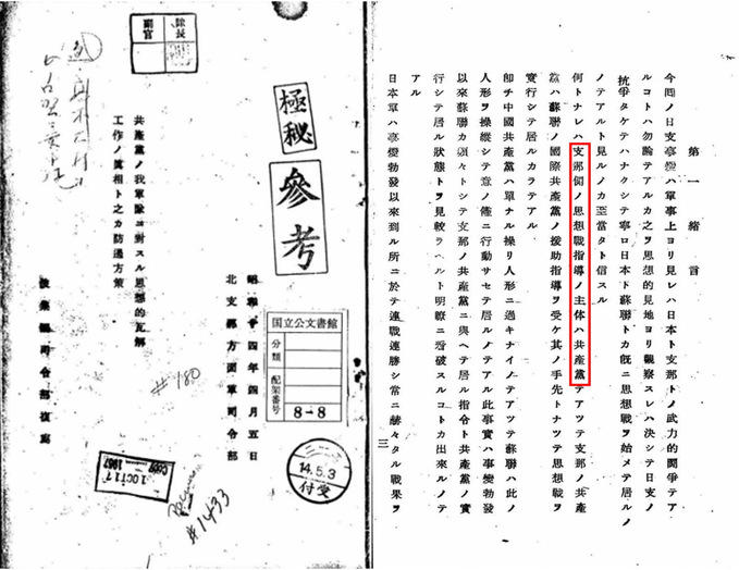 ▲ 日方认为“领导中国思想战的主体是共产党”