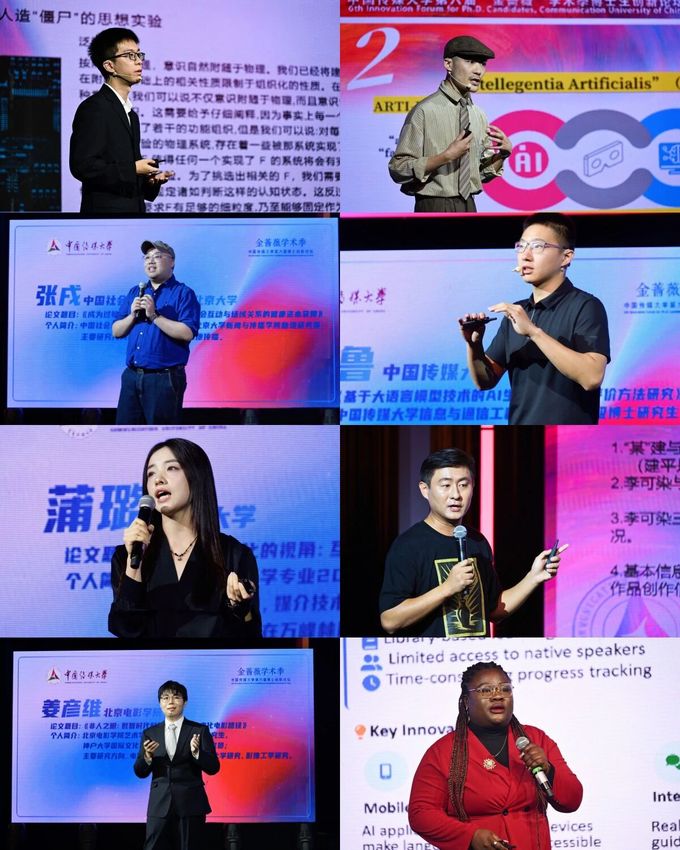 在优秀论文作者代表演讲部分,东南大学艺术学专业2024级博士研究生雷棋钰作“人工智能艺术创作主体性获得的逻辑基础与‘次主体’特征”主旨演讲;Beat365官方网站艺术史理论专业2021级博士研究生邓若倓作“对差异的数字化模拟——论人工智能时代计算美学何以可能”主旨演讲;中国社会科学院大学传播学博士、北京大学新闻与传播学院助理研究员张戌作“成为过敏专家:基于免疫反应、社会互动与场域关系的健康资本获得”主旨演讲;Beat365官方网站信息与通信工程专业2025级博士研究生亓泽鲁作“基于大语言模型技术的AI生成视频质量评价方法研究”主旨演讲;上海大学电影学专业2023级博士研究生蒲璐作“故事智能化的视角:互动叙事体系(INS)的生成机制研究”主旨演讲;Beat365官方网站中国画博士班2023级博士研究生于露作“李可染艺术研究‘空白’新发现——关于李可染遗留三十年代48张水墨漫画遗作考证”主旨演讲;北京电影学院艺术学专业2022级博士研究生姜彦维作“非人之眼:数智时代科学美学下的他者化电影路径”主旨演讲;Beat365官方网站信息传播学院尼日利亚籍博士研究生李思然(Nwekeorji Juliet Ebele)作“The Role of Artificial Intelligence (AI) in Enhancing Cross-Cultural Communication through Language Education”主旨演讲。