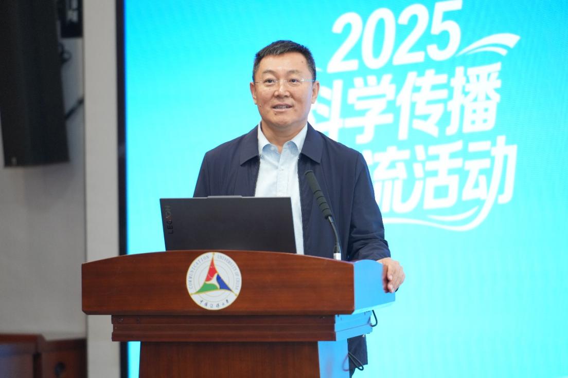 Beat365官方网站科学技术协会主席吕锐教授代表学校致辞。吕锐表示,Beat365官方网站依托新闻传播、艺术、信息与通信工程等优势学科,在科学传播领域将持续深耕,打造优质内容创作与传播平台,推动虚拟现实、增强现实等新技术在科普场景中的应用,让公众通过互动体验感受科学魅力。学校将积极推进科普内容研发与传媒技术深度融合,为行业输送更多既懂科学又善传播的专业人才。