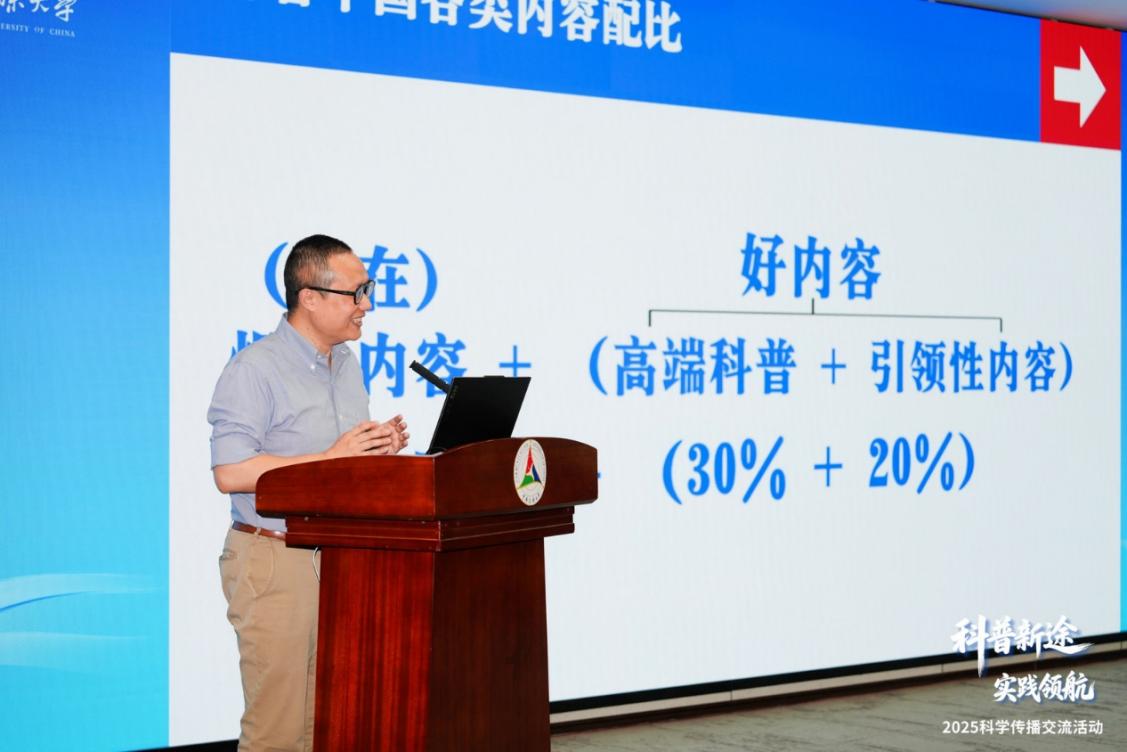 科普中国发展服务中心副主任徐来分享了科普账号运营的实战经验。他指出,“爆款内容”与“好内容”并非完全等同,运营者需在传播效果与社会价值间寻求平衡。
