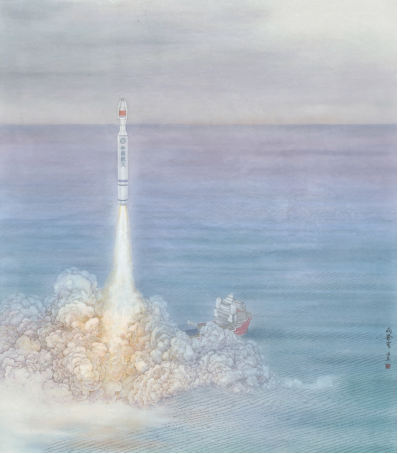 作者阐释:作品以海上火箭发射的壮丽场景为题材,着重刻画火箭发射时的瞬间。在展现自然之美的同时,传递出科技的进步与人类探索精神的崇高与诗意。