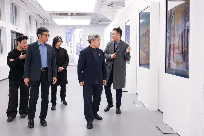 在观展过程中,廖祥忠对“真落地、真成果”的实践项目推广价值给予高度评价,充分肯定广告与品牌学院打破传统视觉传达局限、开展课程融合的教学模式,并鼓励学院持续深化对公共艺术领域的探索与研究。廖祥忠指出,此次展览集中体现了学校在“AI+设计”交叉领域的前瞻布局,充分展现了师生在人机协同创作中的探索精神与实践能力。广告与品牌学院要深入思考专硕专博评价标准,继续深化教学改革,主动服务国家战略、深度融入区域发展,并期待未来能在更多平台上看到学院师生优秀成果。
