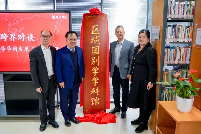 柴剑平、龙小农、罗林及北京第二外国语学院区域国别学院院长余金艳,共同为区域国别学学科馆揭牌。