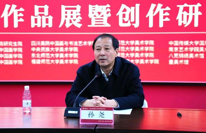 孙尧对展览成果给予高度肯定。他指出,此次展出的博士生作品水平精湛、质量出众,集中展现了当代中国画高端人才培养的丰硕成果,实现了以创作实践检验育人成效的预期目标,令人倍感振奋。面向中国画的未来传承与发展,他向博士生提出三点期望:第一,胸怀崇高使命,勇担时代文化重任。中国画作为中华艺术的瑰宝,具有独特的审美体系与深厚的文化底蕴,其传承与创新的历史使命落在青年一代肩上。学子们要涵养深厚的家国情怀,将个人艺术追求融入国家与民族发展进程中,具备与国际一流艺术家对话的视野与能力。第二,积极拥抱科技变革,善用人工智能赋能艺术创作。在人工智能时代,不应回避技术发展,而应主动将其转化为艺术创作的全方位助手与能力放大器。中国画的未来发展必然与人工智能深度融合,博士生除夯实专业基本功外,还应注重培养人工智能素养,丰富创作方法论与表现形式。第三,坚持深入生活,博采众长以厚植创作底蕴。艺术创作离不开对现实生活的深刻体察,要“行万里路,读万卷书”,应着力创新培养机制,积极引入名家交流,有效拓展学生的艺术视野与创作格局。此外,必须加强对历史的正确认知,积淀广博的知识结构与深厚的文化修养,方能创作出经得起时代检验的精品力作。孙尧鼓励学子对作品精益求精,力求以更多铭刻时代印记、传承民族精神的精品力作,铸就无愧于时代的美术高峰。