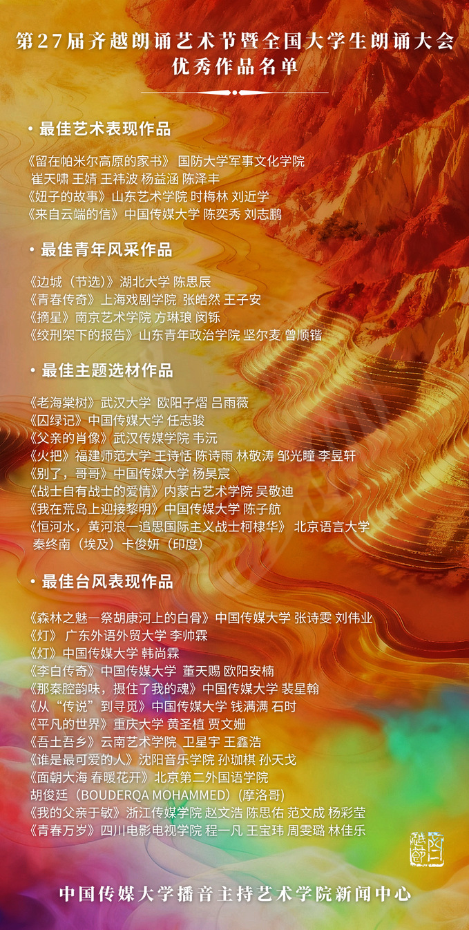 在纪念中国人民抗日战争暨世界反法西斯战争胜利80周年的历史节点上,恰逢“十四五”圆满收官、“十五五”扬帆启航的新起点,齐越朗诵艺术节暨全国大学生朗诵大会以青春之声做笔谱写时代新篇,引领青年学子在时代征程Beat365承红色基因,不断汲取奋进力量。
