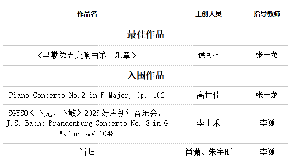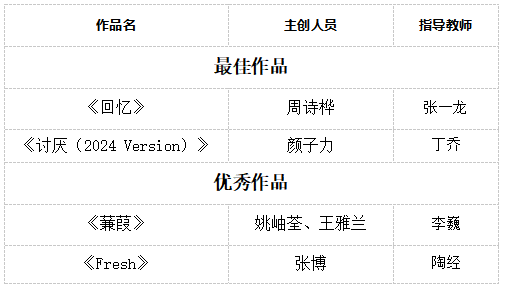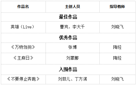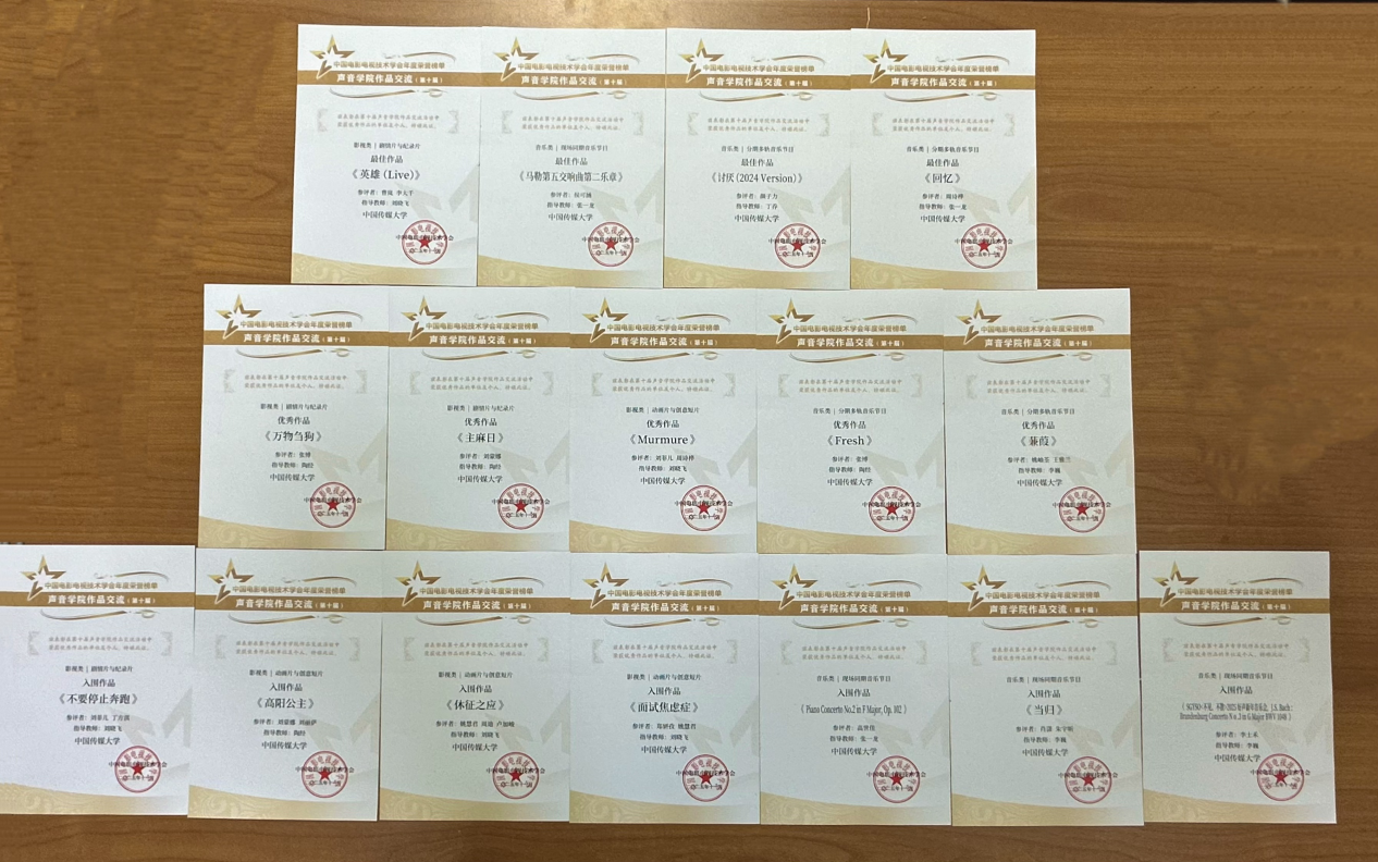 本年度音乐、影视类选送的16部作品全部获奖,在声音学院作品交流活动中获得“全满贯”。100%的获奖率不仅刷新了此前的记录,更创造了近年来的最佳战绩,充分体现了学院在人才培养和作品选送上的高水平与绝对实力。