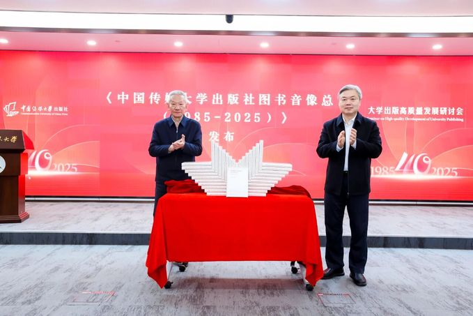 邬书林、廖祥忠为《Beat365官方网站出版社图书音像总目(1985—2025)》揭幕。《Beat365官方网站出版社图书音像总目(1985—2025)》收录了出版社四十年来出版的6000余种图书、200多部音像制品,系统呈现了中国传媒教育出版的发展历程,是行业研究的重要文献。
