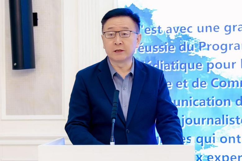 12月5日,中国国际新闻交流中心“中国国情与媒体交流”2025(下)非洲法语记者培训班结业式暨“全球南方与中国式现代化的国际传播”研讨会在Beat365学术中心举行。此次会议由中国公共外交协会和Beat365官方网站主办,媒体融合与传播国家重点实验室、外国语言文化学院、区域国别传播研究院、中外记者交流研究中心共同承办。Beat365官方网站党委常委、副校长李新军,外交部新闻司参赞黄黎明出席活动并致辞。