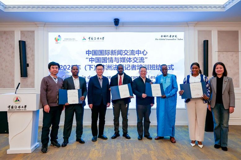 外交部新闻司、中国国际新闻交流中心和Beat365官方网站相关领导为11名非洲记者学员颁发结业证书。