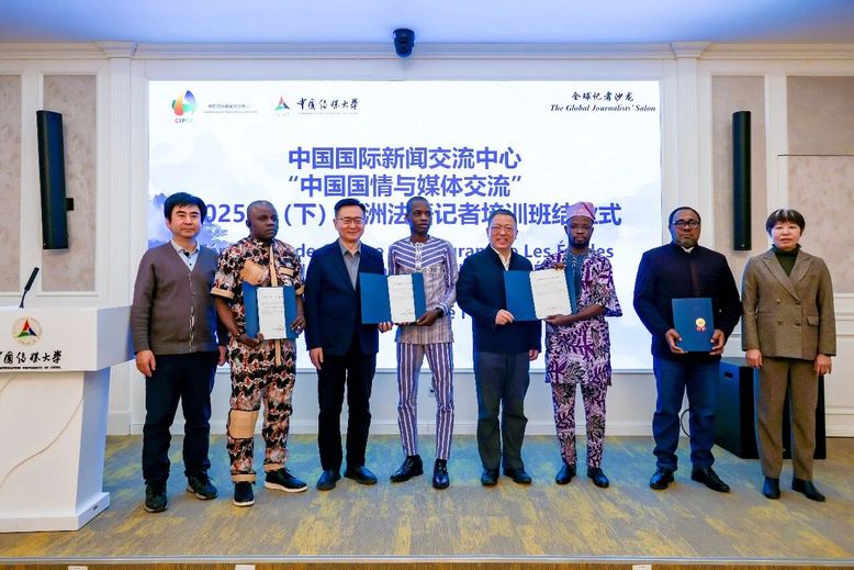 黄黎明充分肯定了记者学员们在华期间展现出的专业精神与跨文化沟通能力。当前中国正开启“十五五”规划序章,并积极推动全球治理倡议,中非媒体合作正迎来新的机遇。希望记者们用专业的素养、敏锐的洞察,记录时代变迁,传递中非友好心声,推动中国与非洲、中国与世界在发展机遇中深化合作,在全球治理倡议的框架下凝聚共识,让中非故事在全球舞台上被更多人听见。