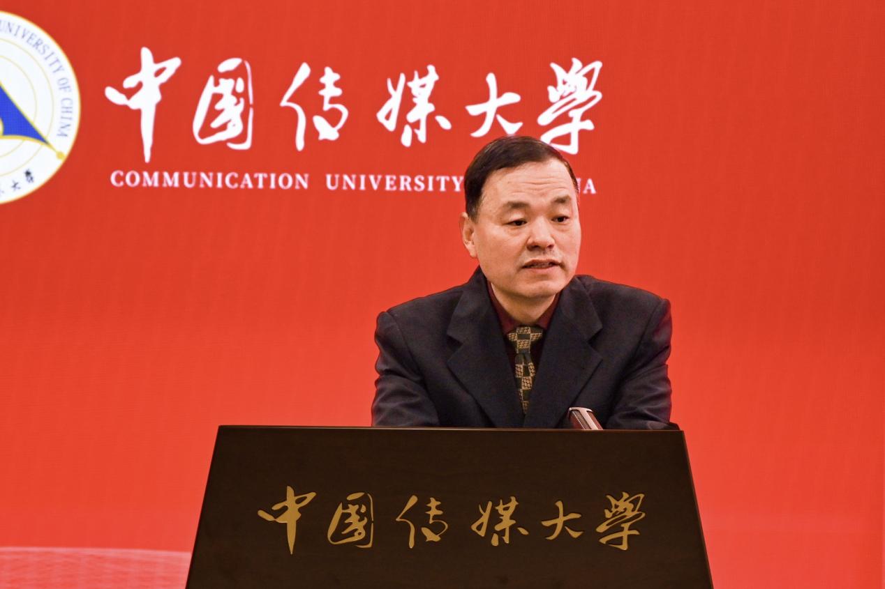 郑鹏代表主办单位致辞。他指出,“人民共和国党报论坛”自2004年创办以来,始终与党和国家事业发展同频共振,紧扣主流媒体转型脉搏,聚焦党报党刊改革创新前沿,形成了一批具有理论深度和实践价值的标志性成果,现已成为我国党报党刊研究领域的权威平台、连接政产学研用的关键纽带。这份沉甸甸的成绩单,凝结着在座每一位参与者的心血与智慧,更是见证了中国主流媒体守正创新的奋斗足迹。他谈了三点认识:第一,要进一步强化主流价值引领,党报党刊姓党,其生命力在于坚守马克思主义新闻观这个魂,坚决守好意识形态阵地。第二,要进一步创新智能驱动范式。党报党刊必须将新型技术从工具层面的应用升维为驱动系统性变革的核心引擎,将其深度融入策、采、编、发、评全流程,重塑内容生产与传播的新范式。第三,要进一步深化协同合作机制。促进主流媒体与商业平台、社交媒体的优势互补,构建“政产学研用”一体化的协同网络。一年来,学校党委始终牢记嘱托,把学习贯彻习近平总书记重要回信精神作为首要政治任务,聚焦新闻舆论工作需要,在优化学科布局、提升教学科研水平、强化国际传播能力建设等方面精准发力,取得一系列阶段性成果。我们期待以此次年会为契机,为深化主流媒体系统性变革注入更多的思想动能,为推动中国新闻传播事业高质量发展贡献更大的力量。